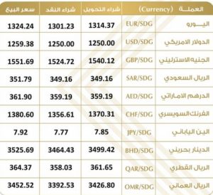 سعر العملات أمام الجنيه السوداني في بنك امدرمان