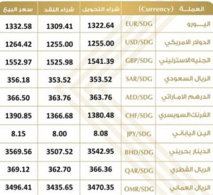سعر العملات أمام الجنيه السوداني في بنك امدرمان السبت 12/5/2024م