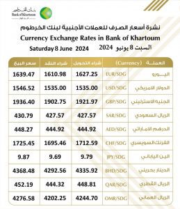 سعر العملات أمام الجنيه السوداني في بنك امدرمان السبت 8/6/2024