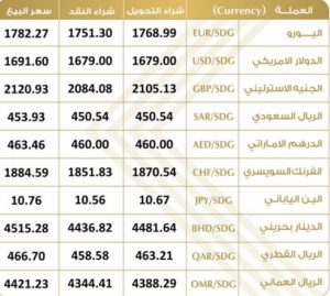 سعر العملات أمام الجنيه السوداني في بنك امدرمان الخميس 13/6/2024