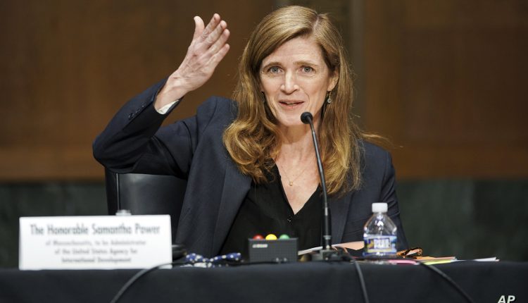 Former U.S. Ambassador to the United Nations, Samantha Power testifies before the Senate Foreign Relations Committee to be the next Administrator of the United States Agency for International Development (USAID), Tuesday, March 23, 2021 on Capitol Hill in Washington. (Greg Nash/Pool via AP)