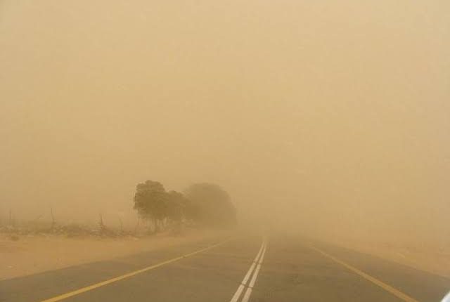 وتدني مستوى الرؤية الأفقية بسبب الغبار والأتربة، ومتوقعاً استمرار هذه الظروف حتى صباح الأحد المقبل، ويُحذر باتخاذ الاحتياطات اللازمة.