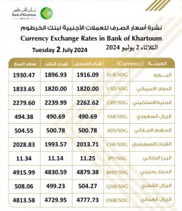 بنك الخرطوم اسعار العملات مقابل الجنيه السوداني اليوم 2 يوليو متابعات - النوارس اقتصاد بواسطة النوارس في يوليو 2, 2024 0 أسعار العملات الصادرة من بنك الخرطوم اليوم الثلاثاء 2 يوليو 2024م: الجنيه السوداني واجه ترنحاً قوياً بين باقي العملات منذ بدء حرب أبريل 2023م مما ادي الي تفاقم الاوضاع في البلاد. تابعنا على الواتساب لمزيد من الاخبار 0 شارك