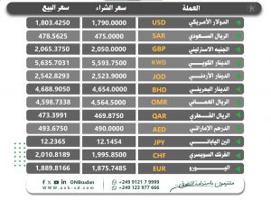 بنك أمدرمان الوطني يعلن سعر الدولار، الدينار مقابل الجنيه السوداني اليوم الخميس 25 يوليو