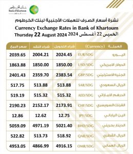 بنك الخرطوم يعلن سعر الجنيه السوداني مقابل الدولار ، الريال السعودي وباقي العملات متابعات - النوارس اقتصاد بواسطة النوارس في أغسطس 22, 2024 أسعار العملات الصادرة من بنك الخرطوم اليوم الخميس 22 أغسطس 2024م: الجنيه السوداني واجه ترنحاً قوياً بين باقي العملات منذ بدء حرب أبريل 2023م مما ادي الي تفاقم الاوضاع في البلاد. تابعنا على الواتساب لمزيد من الاخبار شارك