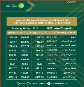 بنك الخرطوم يعلن سعر الجنيه السوداني مقابل الدولار ، الريال السعودي وباقي العملات متابعات - النوارس اخبار بواسطة النوارس في سبتمبر 26, 2024 أسعار العملات الصادرة من بنك الخرطوم اليوم الخميس 26 سبتمبر 2024م: الجنيه السوداني واجه ترنحاً قوياً بين باقي العملات منذ بدء حرب أبريل 2023م مما ادي الي تفاقم الاوضاع في البلاد وغلا المعيشة وإرتفاع الاسعار. تابعنا على الواتساب لمزيد من الاخبار شارك