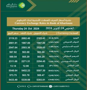 بنك الخرطوم.. زيادة مفاجئة في أسعار الدولار و العملات مقابل الجنيه السوداني متابعات - اانوارس اقتصاد بواسطة النوارس في أكتوبر 24, 2024 أسعار العملات الصادرة من بنك الخرطوم اليوم الخميس 24 إكتوبر 2024م: الجنيه السوداني واجه ترنحاً قوياً بين باقي العملات منذ بدء حرب أبريل 2023م مما ادي الي تفاقم الاوضاع في البلاد وغلا المعيشة وإرتفاع الاسعار. تابعنا على الواتساب لمزيد من الاخبار شارك