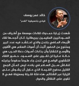 إذا كان خالد عمر يوسف ـ وهو قيادي مسؤول ـ يصف من هتفوا ضده بلندن (بالجمع مدفوع القيمة) فهذا يعني أن الرجل فقد ثباته الإنفعالي تماما.