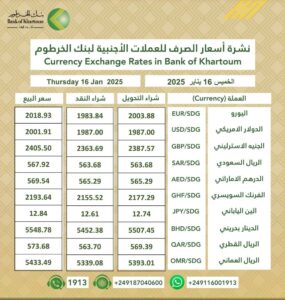 بنك الخرطوم يعلن اسعار الدولار والعملات الآخري متابعات - النوارس اقتصاداخبار بواسطة النوارس في يناير 16, 2025 أسعار العملات الصادرة من بنك الخرطوم اليوم الخميس 16 يناير 2025م الجنيه السوداني واجه ترنحاً قوياً بين باقي العملات منذ بدء حرب أبريل 2023م مما ادي الي تفاقم الاوضاع في البلاد وغلا المعيشة وإرتفاع الاسعار. تابعنا على الواتساب لمزيد من الاخبار شارك