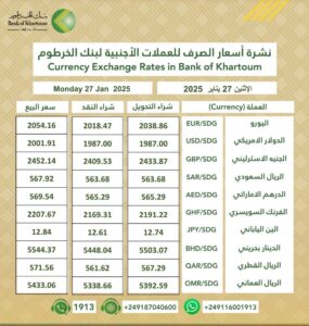بنك الخرطوم يعلن أسعار الدولار والعملات الآخري متابعات - النوارس اقتصاد بواسطة النوارس في يناير 27, 2025 0 أسعار العملات الصادرة من بنك الخرطوم اليوم الإثنين 27 يناير 2025م الجنيه السوداني واجه ترنحاً قوياً بين باقي العملات منذ بدء حرب أبريل 2023م مما ادي الي تفاقم الاوضاع في البلاد وغلا المعيشة وإرتفاع الاسعار. تابعنا على الواتساب لمزيد من الاخبار 0 شارك