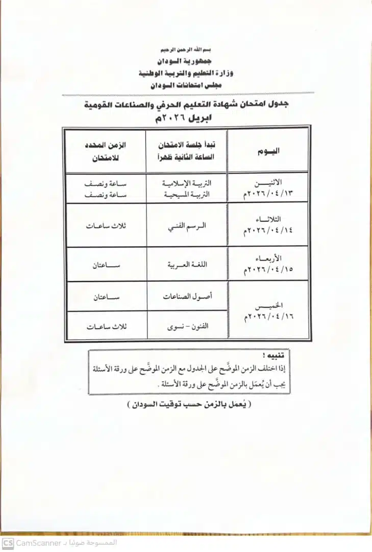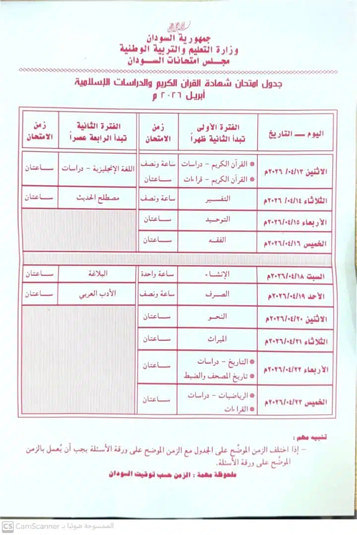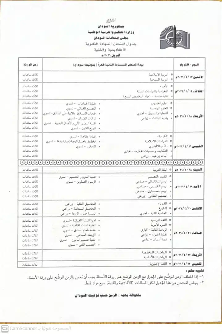 وبحسب معلومات حصلت عليها ” النوارس نيوز” ، تنطلق الامتحانات يوم الاثنين 13 أبريل 2026، وتستمر حتى الخميس 23 من الشهر نفسه، في جميع المسارات التعليمية دون استثناء، مع توحيد زمن الجلسات عند الساعة الثانية بعد الظهر بتوقيت السودان، في خطوة تهدف لضمان العدالة والانضباط الامتحاني.